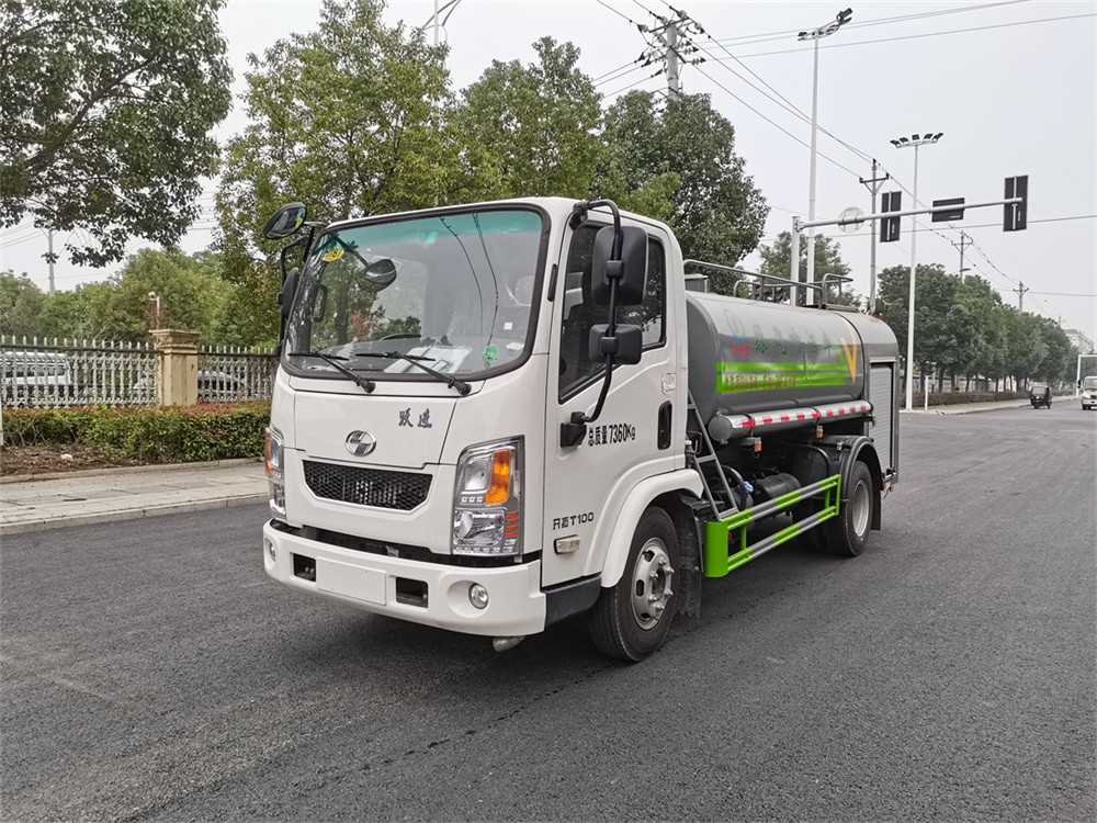 灑水車前裝有鴨形噴嘴或圓頭沖嘴,后面裝有圓柱開灑水噴嘴或蓮蓬頭噴嘴,后部有一工作平臺,裝配有水炮。后部還可裝8個噴嘴(選裝)。