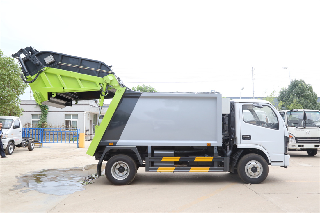 上裝配置:垃圾箱容積:6方,新款平面弧形廂體,廂體材料為武鋼優(yōu)質(zhì)碳鋼,PLC一鍵操作**,手電一體操作模式,兩側(cè)雙電控,帶駕駛室內(nèi)操作,底板支撐加強(qiáng),雙向壓縮,開放式易清潔污水箱。壓縮式垃圾車采用機(jī)電液一體化技術(shù),借助機(jī)、電、液聯(lián)合自動(dòng)**系統(tǒng)、電腦**、手動(dòng)操作系統(tǒng),通過填裝器和推鏟等專用裝置,實(shí)現(xiàn)垃圾倒入、壓碎或壓扁、強(qiáng)力裝填,把垃圾擠入車廂并壓實(shí)和推卸,污水全部進(jìn)入污水廂,解決了垃圾運(yùn)輸過程中的二次污染的問題。壓縮式垃圾車具有自動(dòng)反復(fù)壓縮以及蠕動(dòng)壓縮功能,壓縮比高、密封性好、裝載量大﹑操作方便、環(huán)保性好﹑整車?yán)霉β矢叩葍?yōu)點(diǎn)。作業(yè)自動(dòng)化,垃圾收集方式簡(jiǎn)便、高效。后翻轉(zhuǎn)機(jī)構(gòu)選裝:1、掛塑料桶式翻轉(zhuǎn)機(jī)構(gòu);2、掛鐵桶式翻轉(zhuǎn)機(jī)構(gòu);3、擺臂式翻轉(zhuǎn)機(jī)構(gòu); 4、簸箕斗式翻轉(zhuǎn)機(jī)構(gòu)。