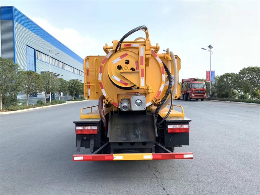 配置SK-9水循環泵(可選裝油泵、杭州威龍泵)國產天津240KG/170流量高壓泵(可選裝進口高壓泵),60米19高壓管,8米吸污管一根,十個高強度噴頭,后一個100進污口,一個150排污口,罐體可舉升,后蓋可液壓開啟,全套為液壓操控,加大工具箱、視糞窗上帶球閥,一個洗手小球閥、兩個消防接口、兩個泄壓閥、加寬平臺、防溢閥,真空泵帶油水分離器,帶洗手裝置,管道清洗裝置,冬季吹水裝置。