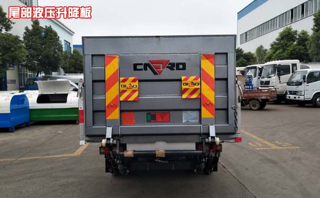 改裝箱體容積:3400×1750×600(mm),可裝15個垃圾桶,尾部液壓升降板,兩側側翻欄板,方便搬運垃圾桶,選裝定位桿,可防止垃圾桶在運輸過程中滑動或傾倒。適用與城市污水垃圾桶的運輸,防止城市路面二次污染。是保證城市路面清潔的必用專用車。